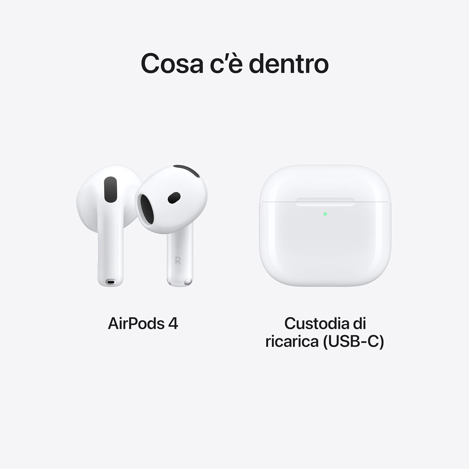 Apple AirPods 4 Auricolari wireless, Auricolari Bluetooth, Audio spaziale personalizzato, Resistenza al sudore e all’acqua, Custodia di ricarica USB-C, Chip H2, Fino a 24 ore di autonomia